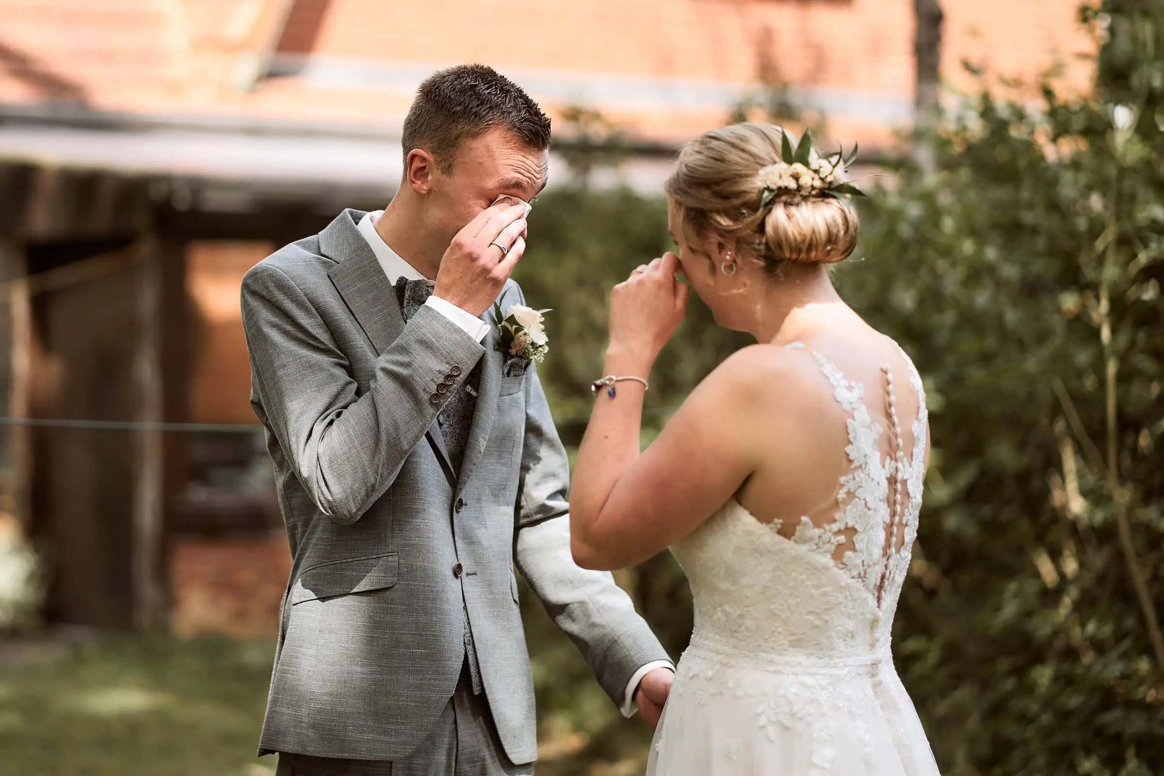 Der First Look ist einer der emotionalsten Momente des Tages: Ihr seht euch zum ersten Mal in euren Hochzeitsoutfits und könnt diese besondere Begegnung ganz privat oder klassisch bei der Trauung erleben. Dieser Moment ist voller Liebe und Vorfreude – und wir halten ihn in natürlichen Bildern aus zwei Perspektiven fest.
